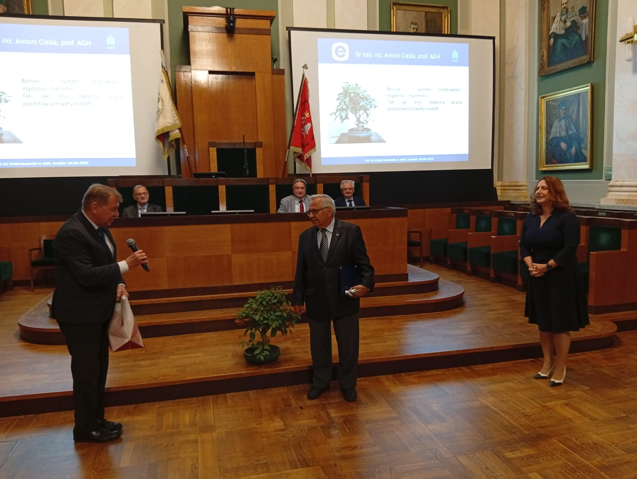 Panie Profesorze, Pana wieloletnia praca badawcza, dydaktyczna i organizacyjna oraz wyjątkowe zaangażowanie w życie AGH stanowi dla nas wzór do naśladowania. Dziękujemy za lata poświęcone Uczelni, podczas których mogliśmy razem współpracować na rzecz naszego Wydziału.
